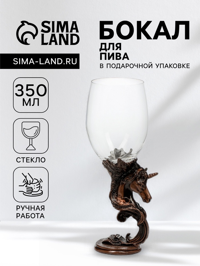 Пивной бокал «Единорог», 21.3×8.5 см, стекло, прозрачный, бронзовый 8 фото