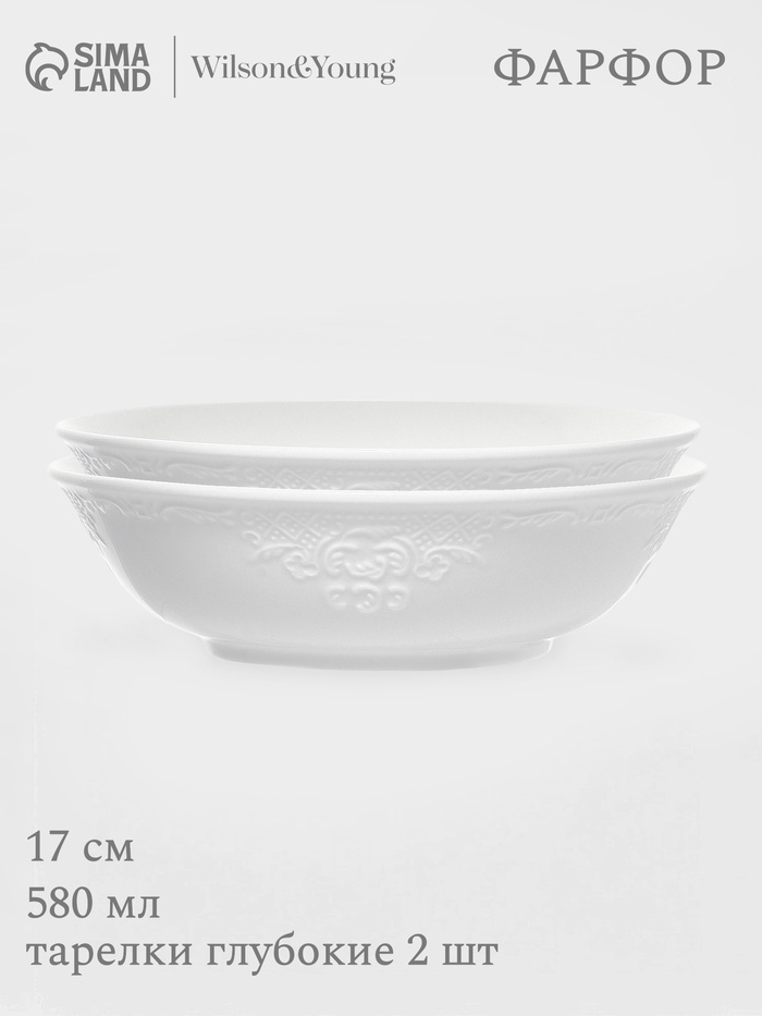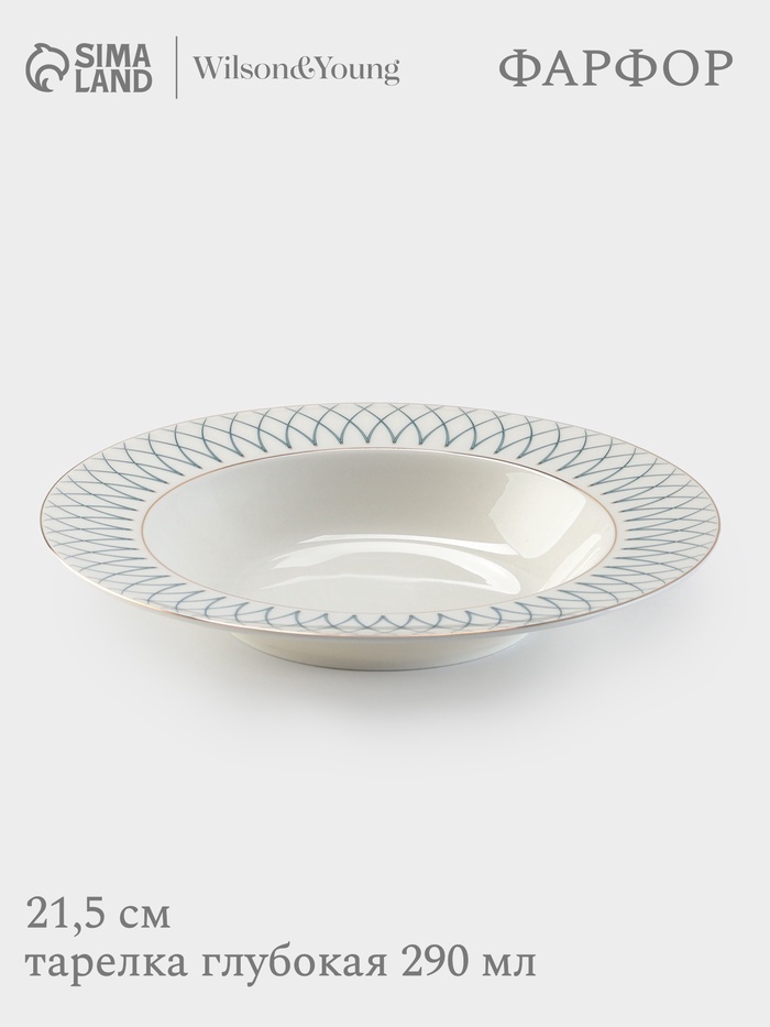 Тарелка глубокая WY Emerald Essence, 200 мл, d=21.5 см, фарфор, белая 10 фото