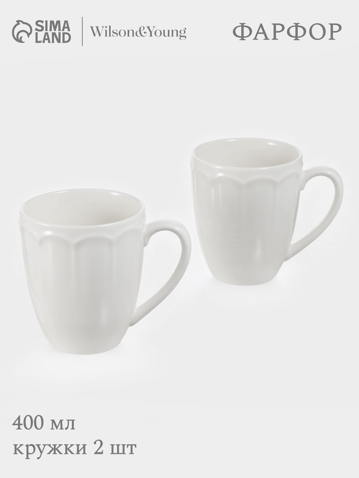 Набор кружек Доляна «Винтаж», 350 мл, набор 2 шт., керамика, бежевые 7 фото