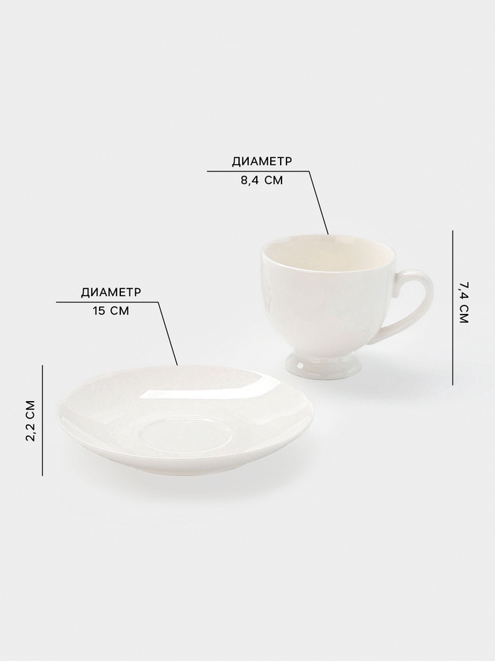 Чайная пара Доляна «Винтаж», 250 мл, блюдце d=15 см, керамика, бежевая 10 фото