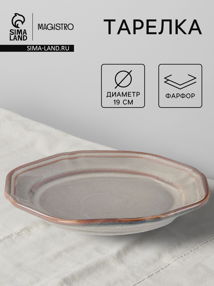 Тарелка Magistro Vintage, d=19 см, фарфор, серая 8 фото