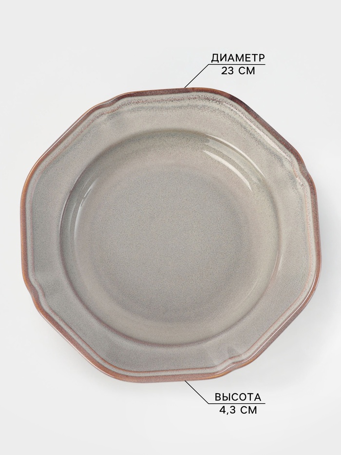 Тарелка глубокая Magistro Vintage, 420 мл, d=23 см, фарфор, серая 7 фото