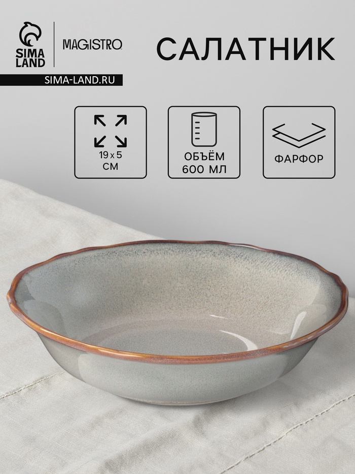 Салатник Magistro Vintage, 600 мл, 19×5 см, фарфор, серый 6 фото