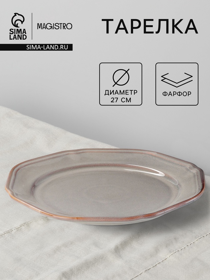 Тарелка Magistro Vintage, d=27 см, фарфор, серая 8 фото