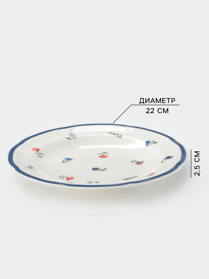 Тарелка глубокая WY Royal blue, 220 мл, d=21.5 см, фарфор, белая, голубая 7 фото