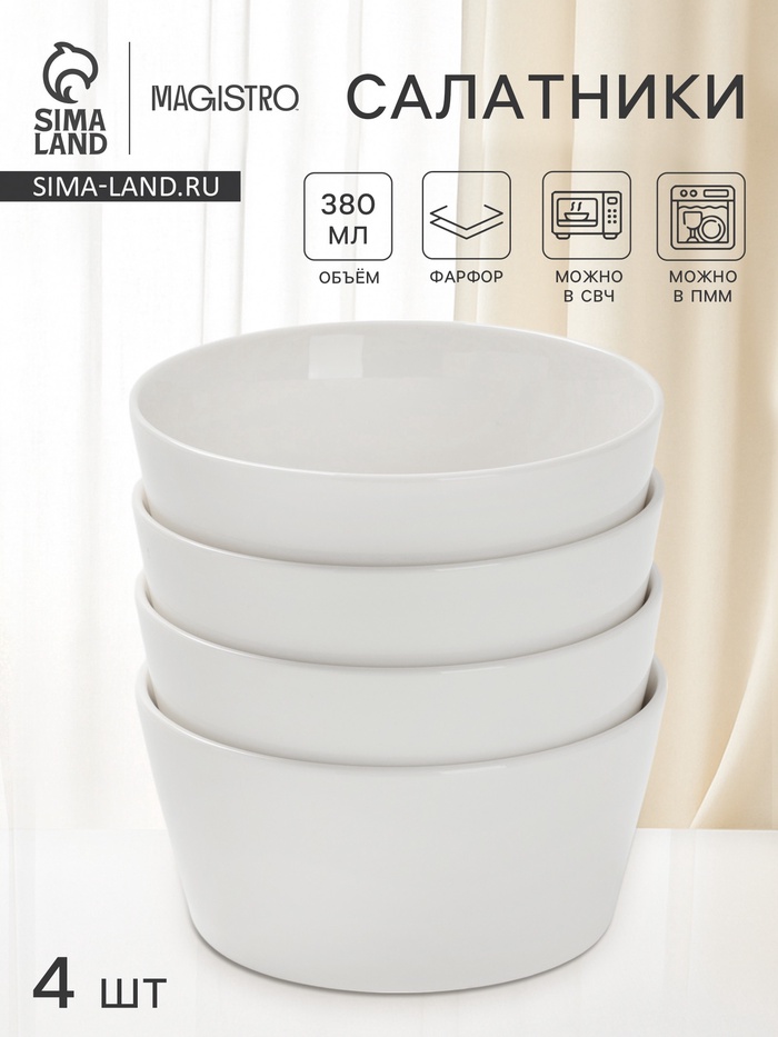 Салатники Magistro White Snow, набор 4 шт., 380 мл, фарфор, белые 6 фото