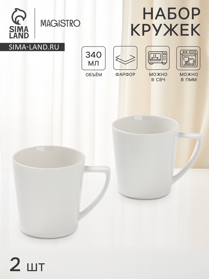 Кружки Magistro White Snow, набор 2 шт., 340 мл, фарфор, белые 5 фото