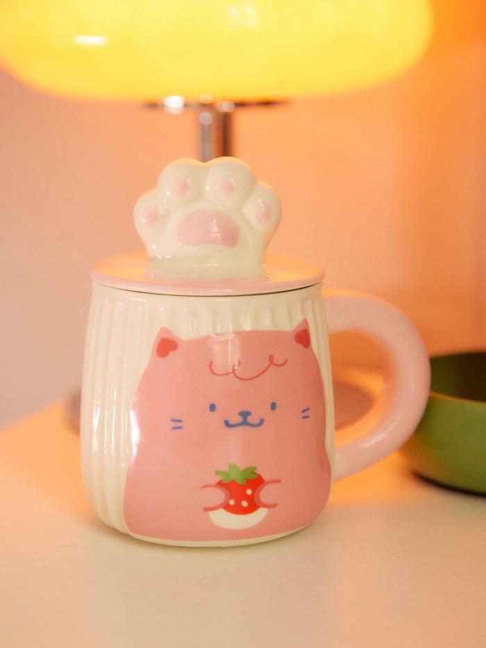 Кружка с крышкой Доляна «Лапочка», 450 мл, керамика, розовая 6 фото