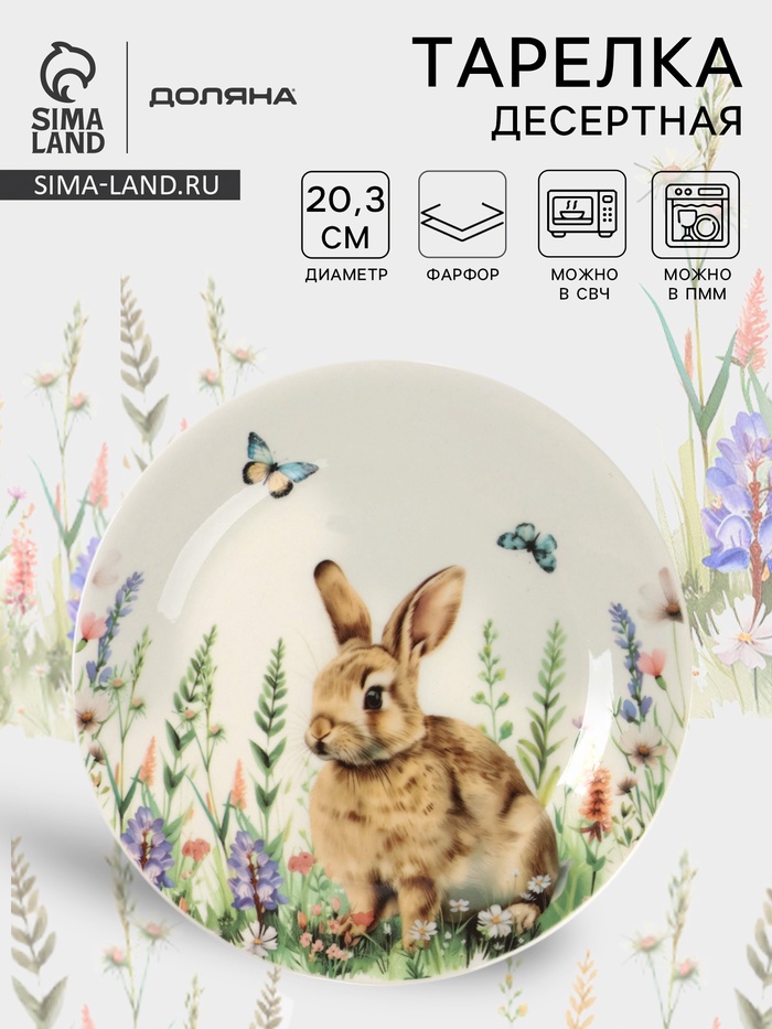 Тарелка десертная Доляна «Зайка», d=20.3 см, фарфор, белая 4 фото