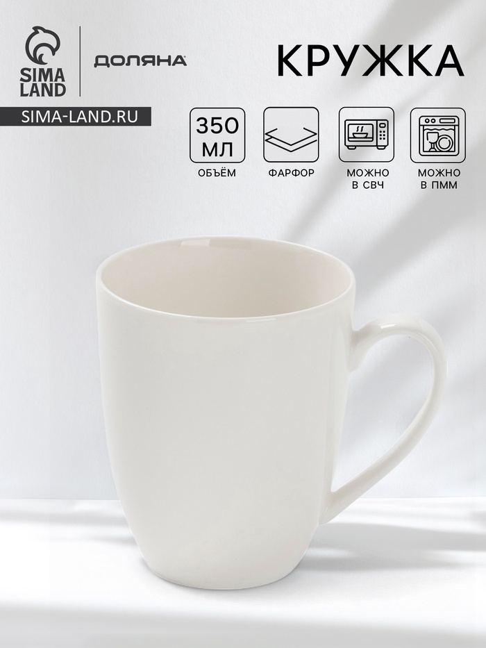Кружка Доляна White Label, 350 мл, фарфор, белая 2 фото