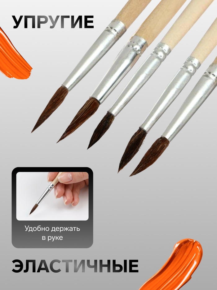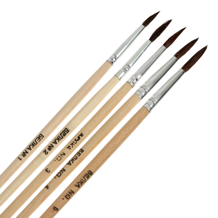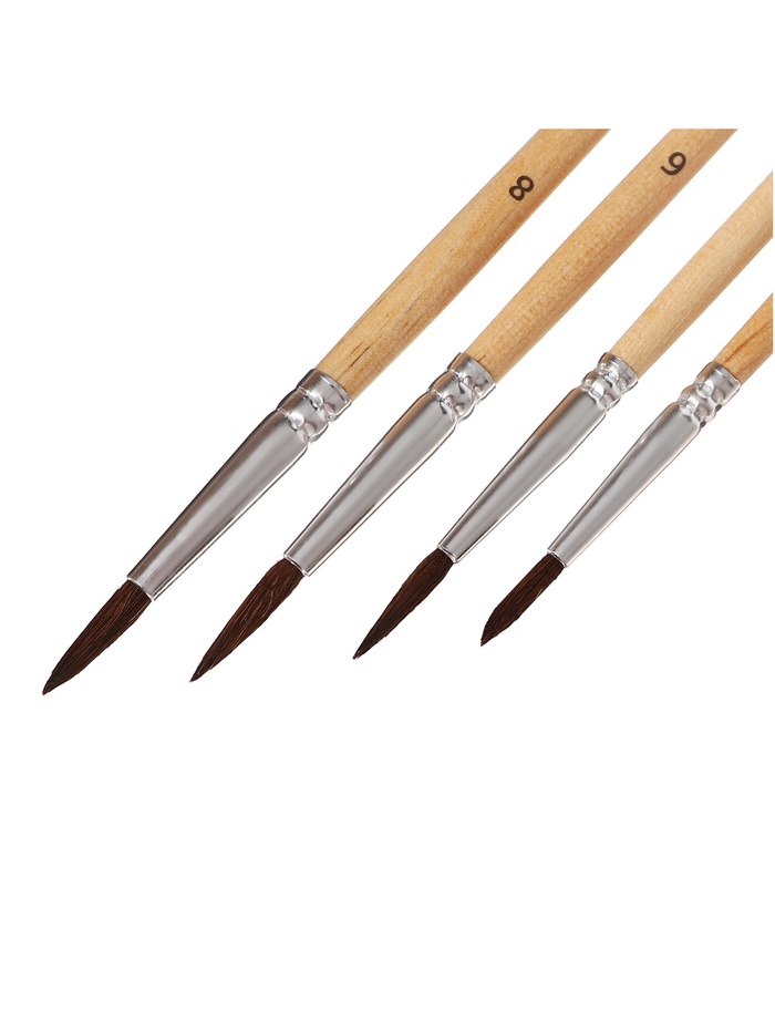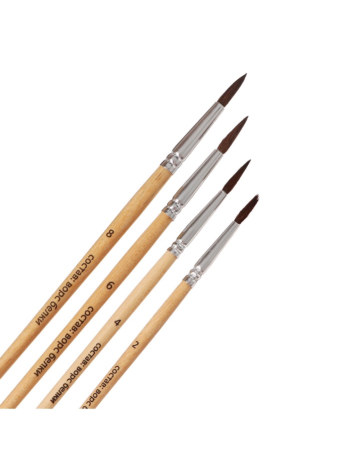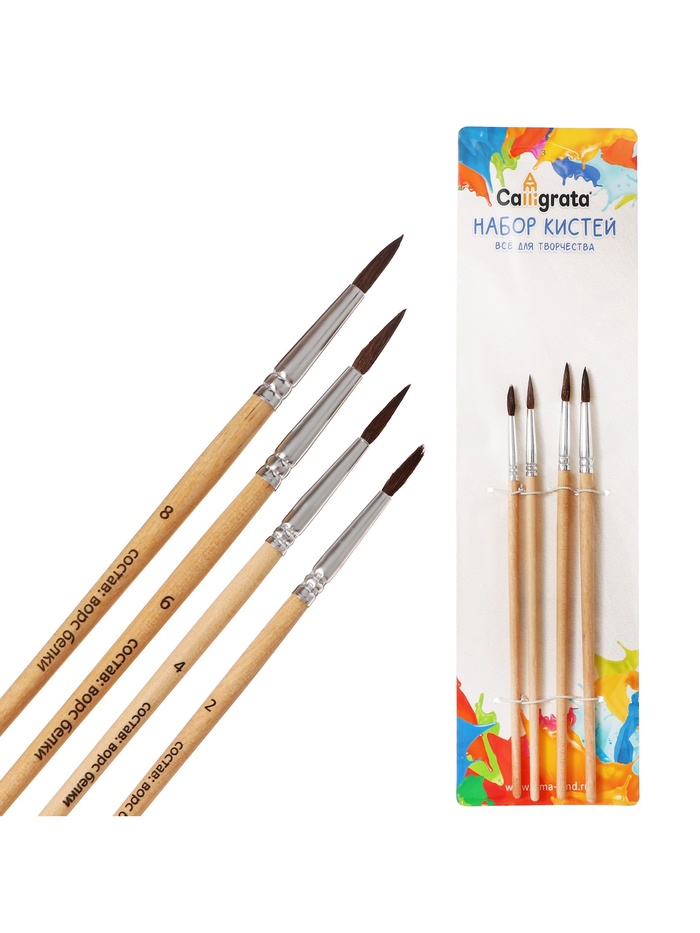 Набор кистей для рисования, белка, 4 штуки: № 2, 4, 6, 8, Calligrata, круглые, деревянная ручка, международный размер 4 фото