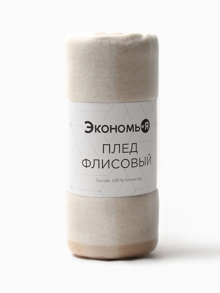 Плед флисовый «Экономь и Я. Клетка», бежевый, 150×130 см, флис 160 г/м² 7 фото