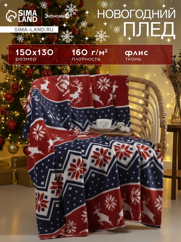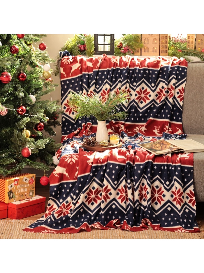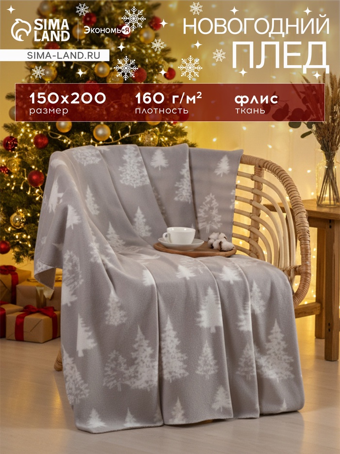 Плед флисовый новогодний «Экономь и Я. Ёлочки», 150×200 см, пл. 160 г/м² 8 фото