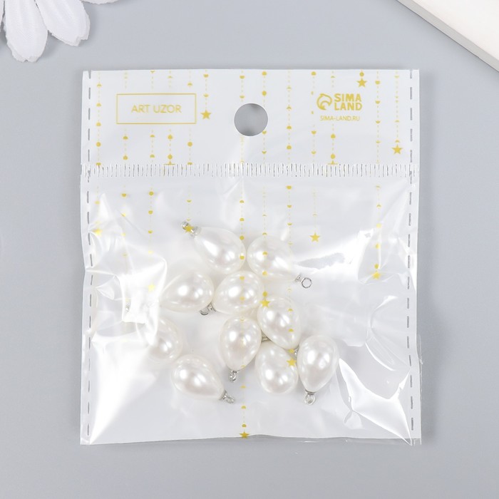 Декор для творчества пластик «Жемчужина-капелька с петелькой» набор 10 шт. 1.4×1 см 5 фото