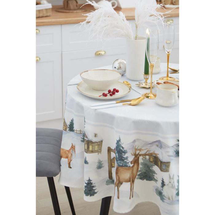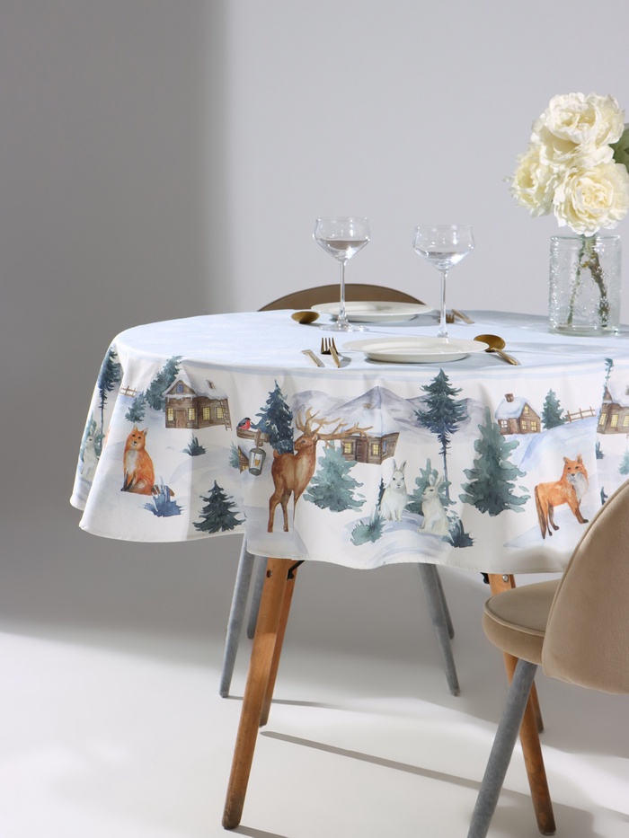 Скатерть новогодняя «Этель» Forest animals, d=150 см ±3 см с ГМВО, 100% хлопок, саржа 190 г/м² 10 фото
