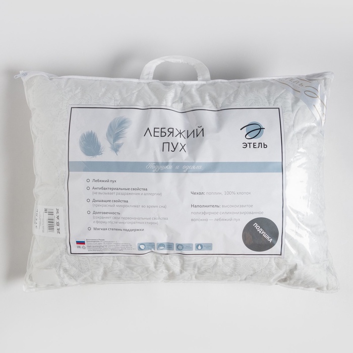 Подушка Экономь и Я, 70×70, лебяжий пух, чехол тик, МИКС 8 фото