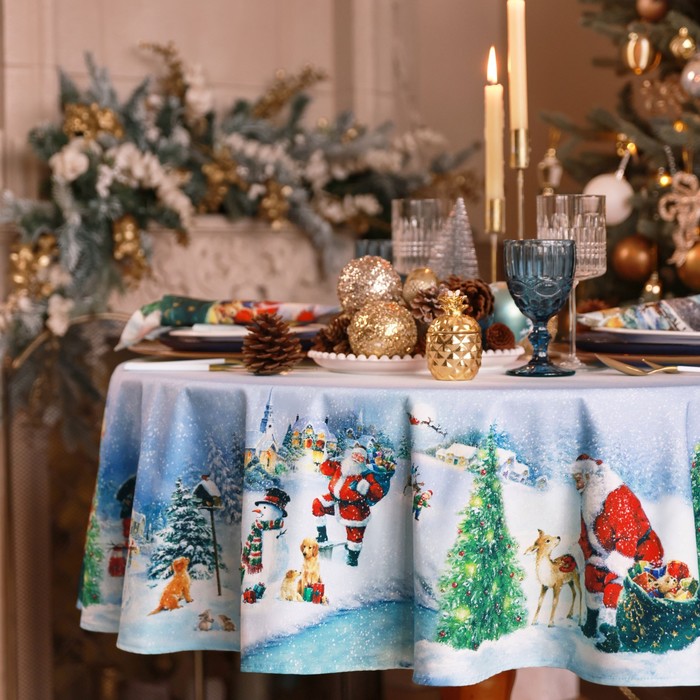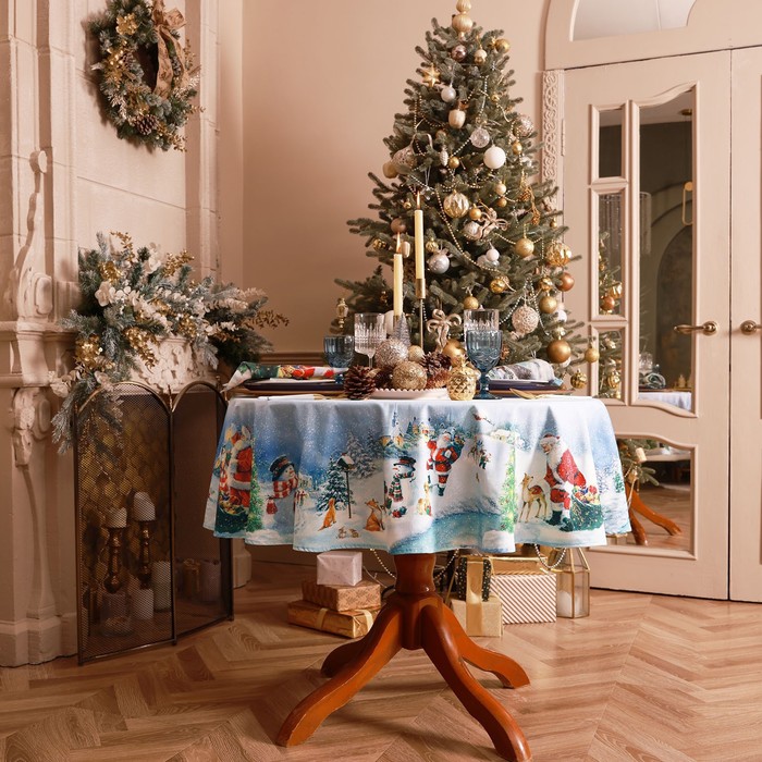Скатерть новогодняя «Этель. Рождественский вечер», d=150 см, 100% хлопок, саржа 190 г/м² 8 фото