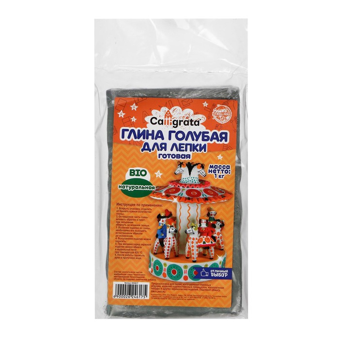 Глина для лепки натуральная голубая 1000 г, Calligrata, самозатвердевает (подходит для обжига) 7 фото