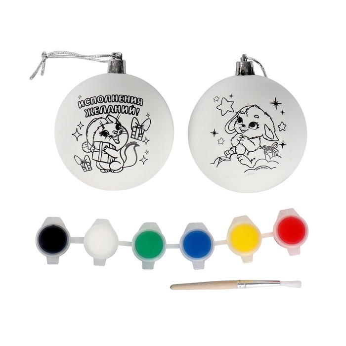 Ёлочные шары под раскраску на новый год «Загадай желание», d=7 см, 2 шт., набор для творчества 3 фото