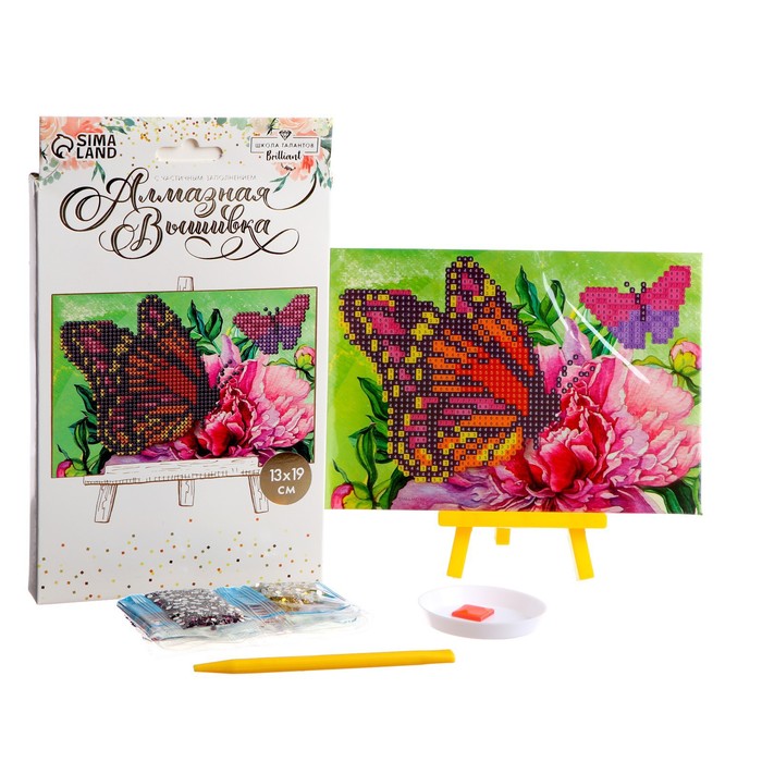 Алмазная мозаика с частичным заполнением на подставке «Бабочки», 13×19 см, картон 5 фото