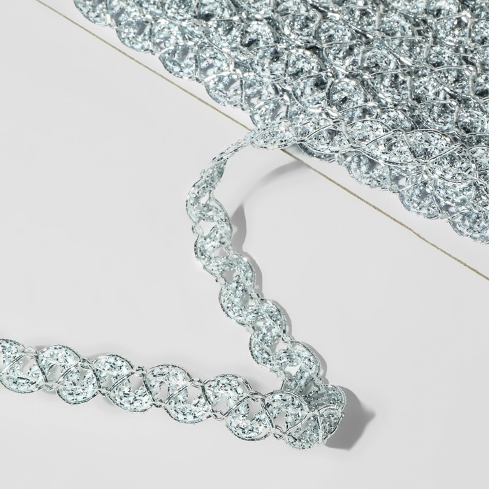Тесьма декоративная, 10 мм, 10 ± 1 м, цвет серебряный 3 фото