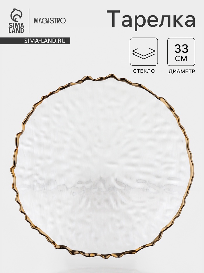 Тарелка Magistro «Риччи», d=33 см, h=2 см, с золотистой отводкой, стекло, прозрачная 6 фото