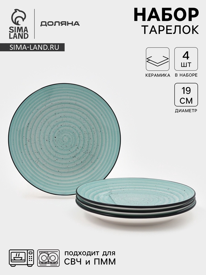 Набор тарелок Доляна Nature, 4 шт., d=19 см, керамика, голубые 7 фото
