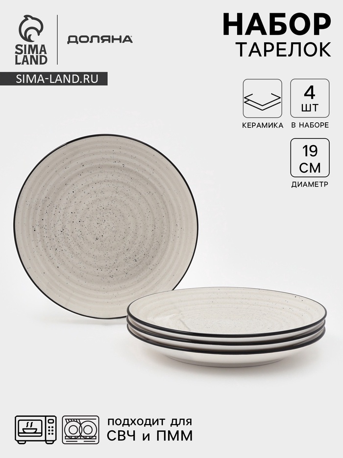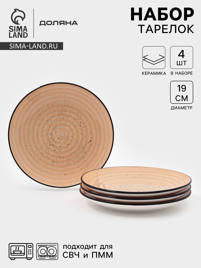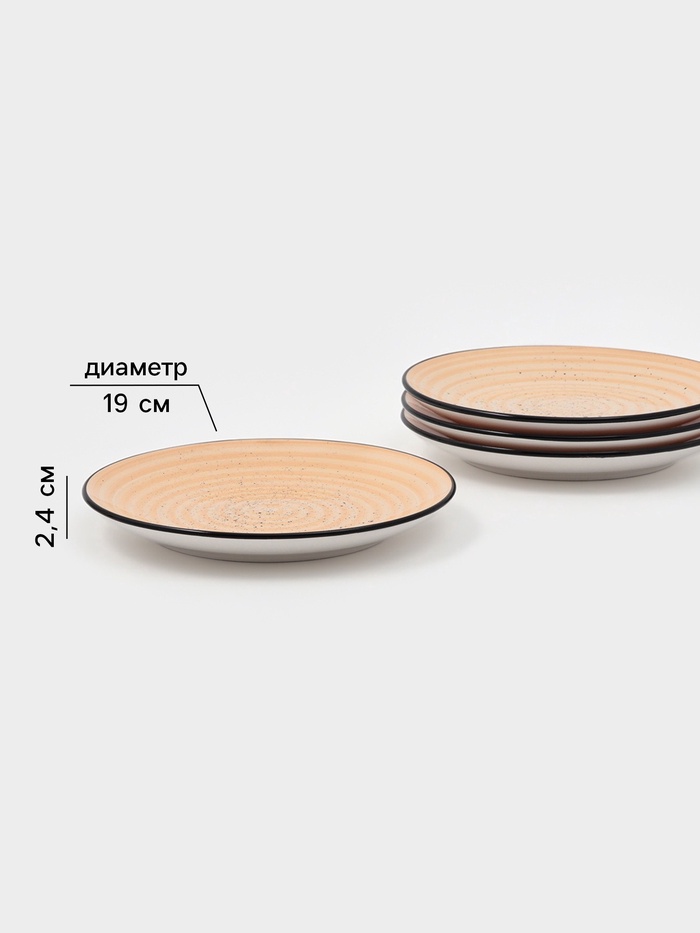 Набор тарелок Доляна Nature, 4 шт., d=19 см, керамика, бежевые 7 фото