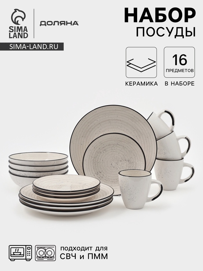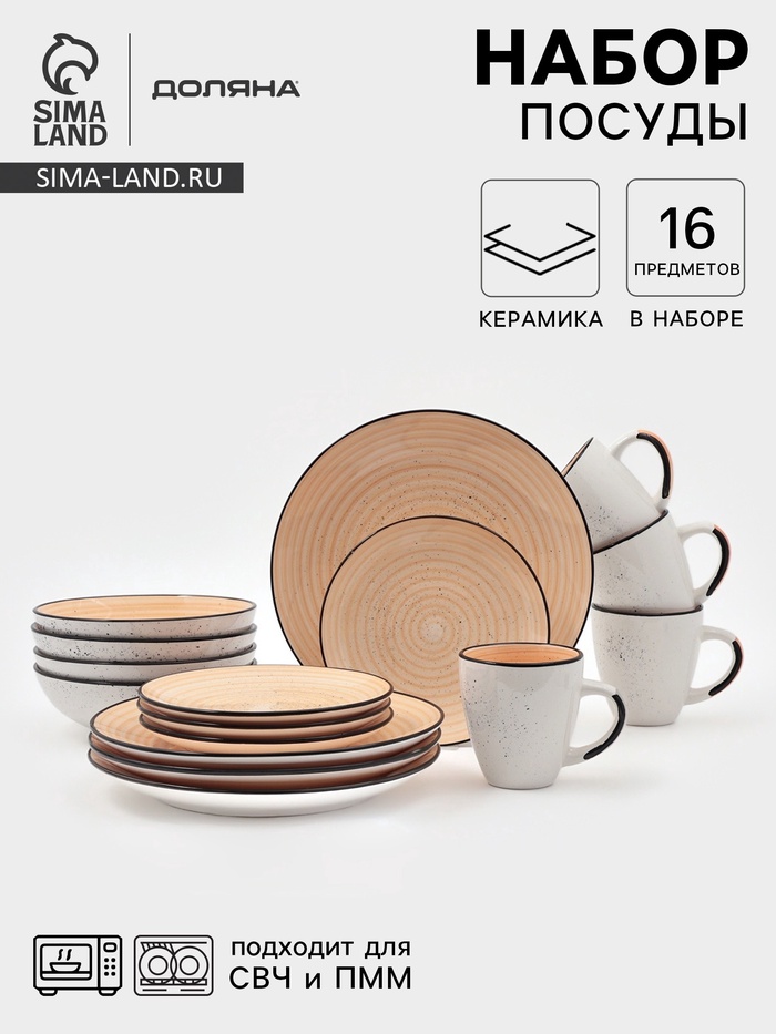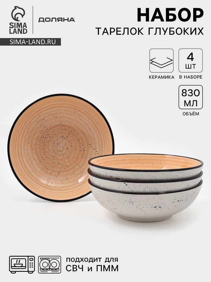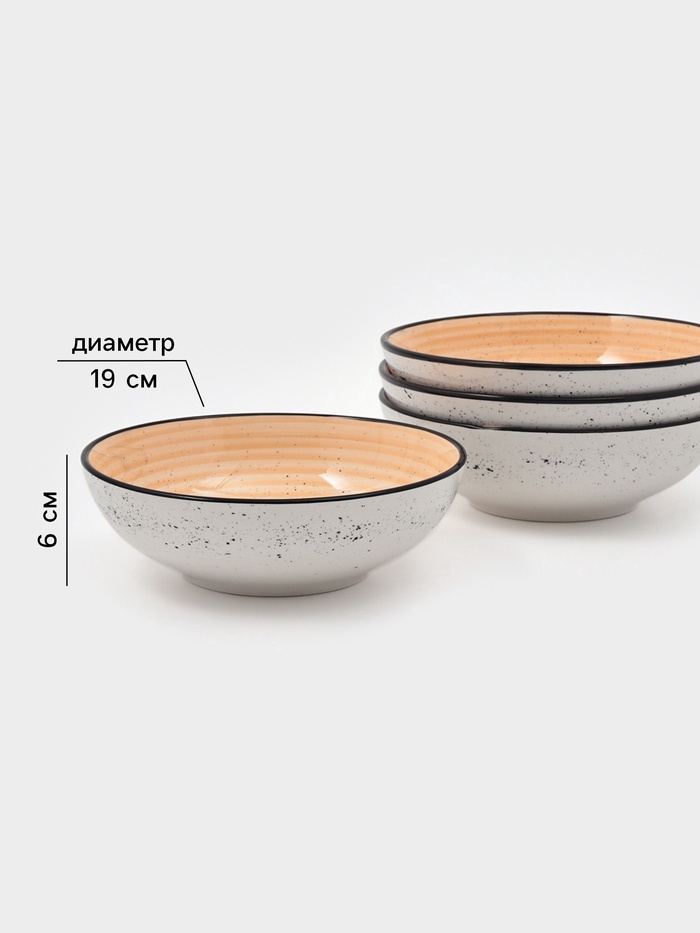 Набор тарелок глубоких Доляна Nature, 4 шт., d=19 см, керамика, бежевые 7 фото