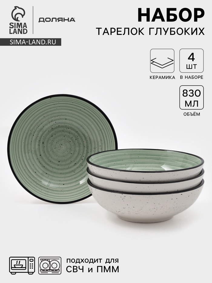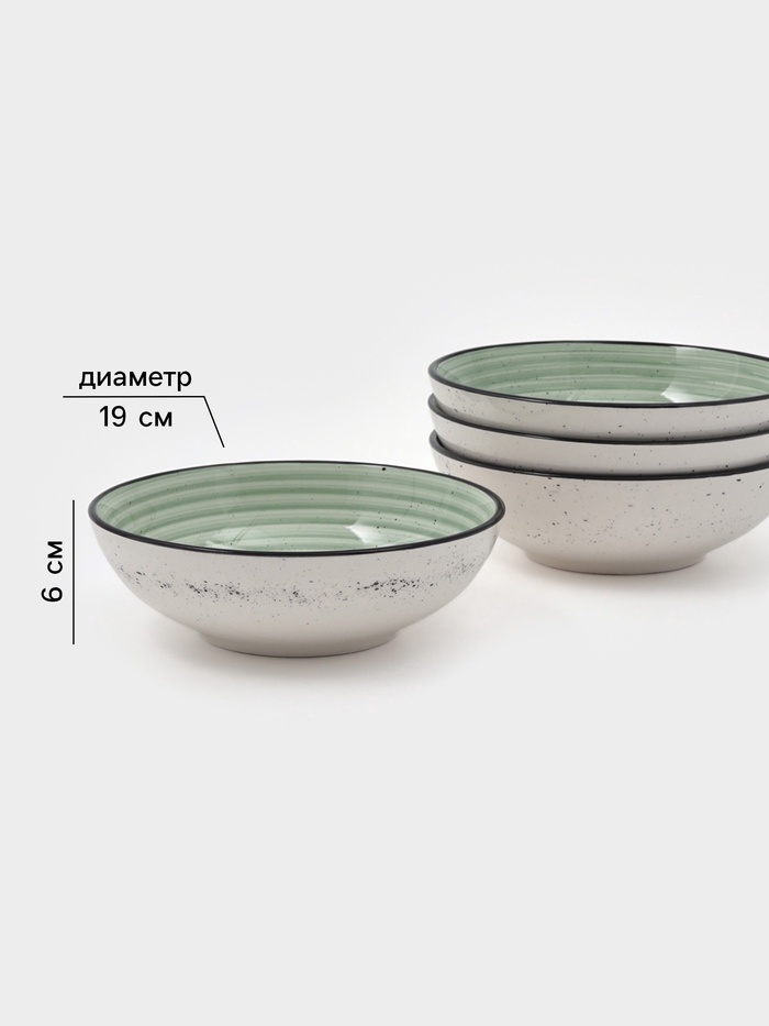 Набор тарелок глубоких Доляна Nature, 4 шт., d=19 см, керамика, зелёные 7 фото