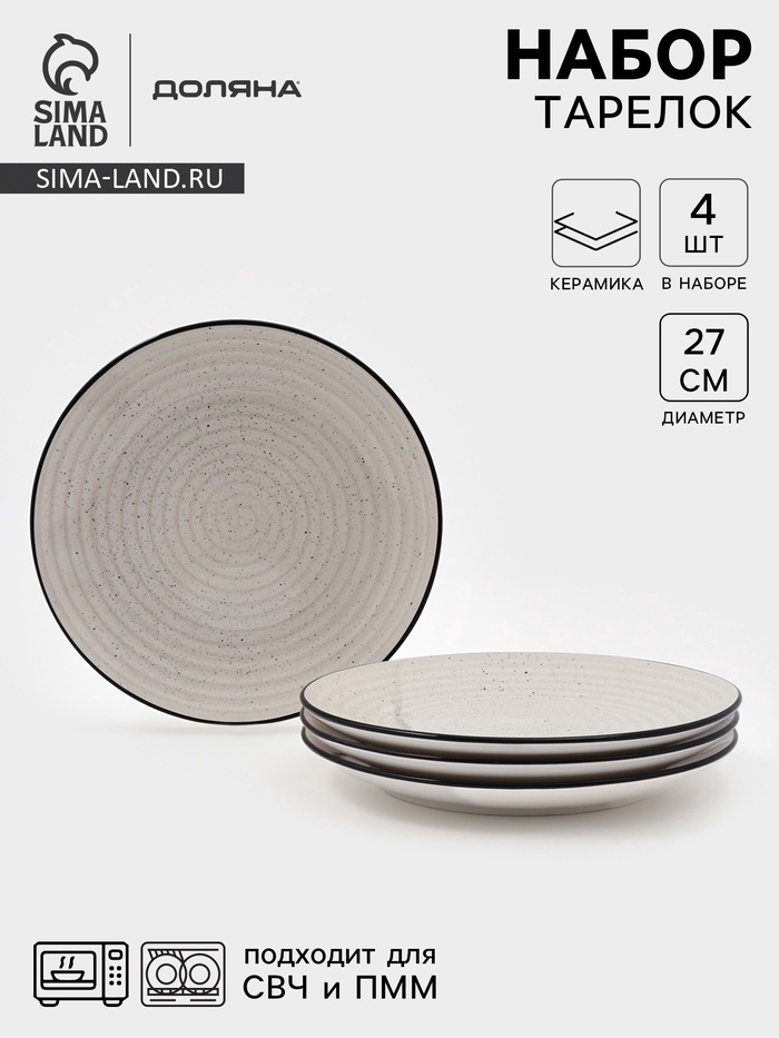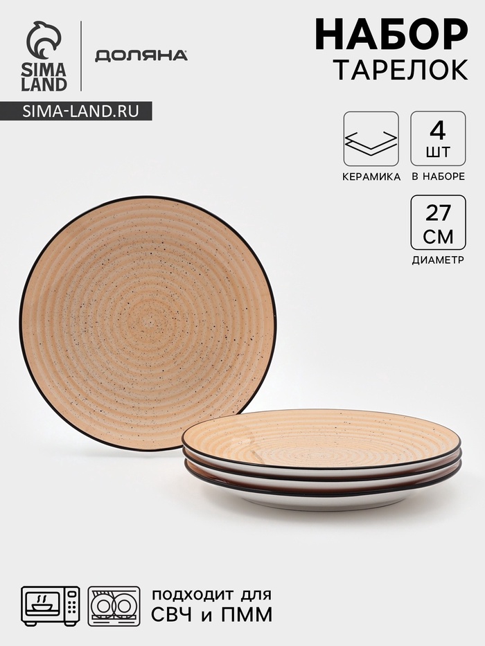 Набор тарелок Доляна Nature, 4 шт., d=27 см, керамика, бежевые 7 фото