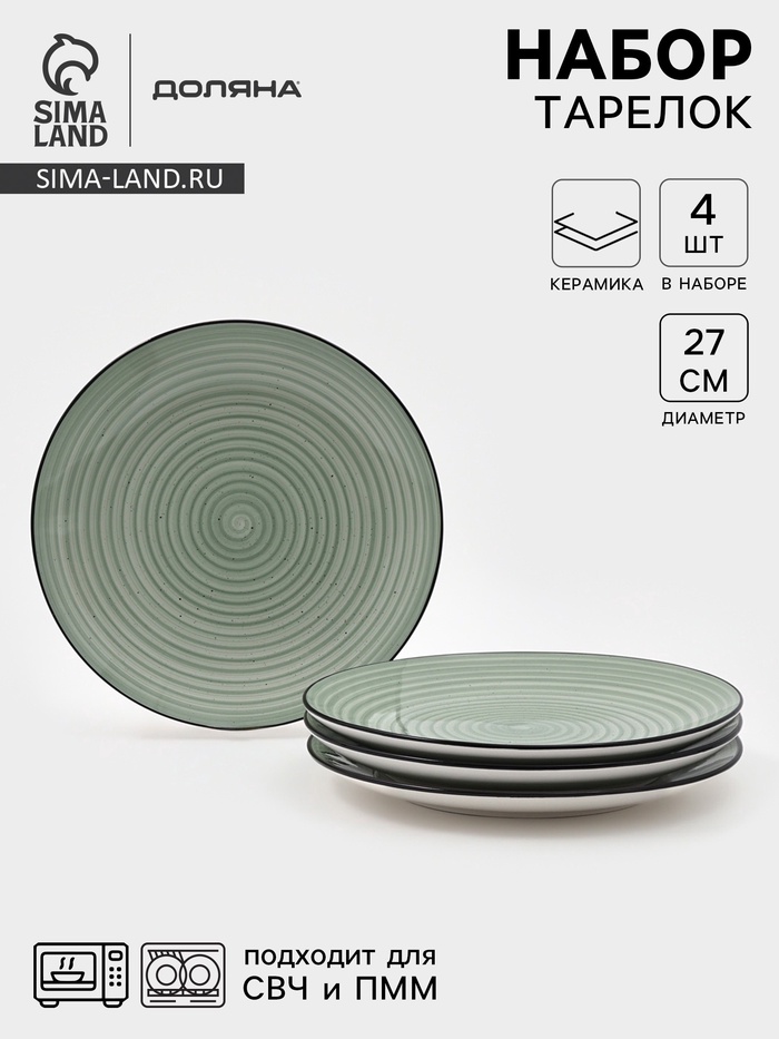 Набор тарелок Доляна Nature, 4 шт., d=27 см, керамика, зелёные 7 фото