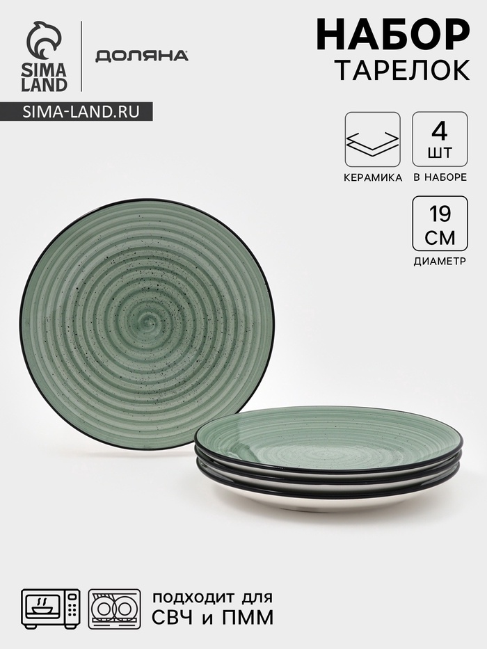 Набор тарелок Доляна Nature, 4 шт., d=19 см, керамика, зелёные 7 фото