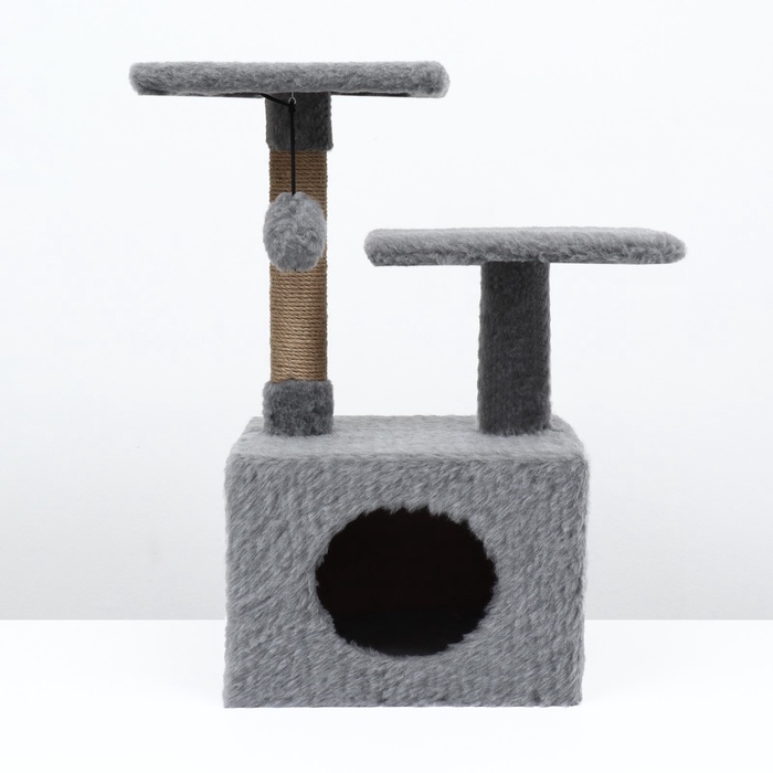 Домик-когтеточка 2-х ур. квадратный с 2-мя квадратными полками, 53×35×65 см, серый 9 фото
