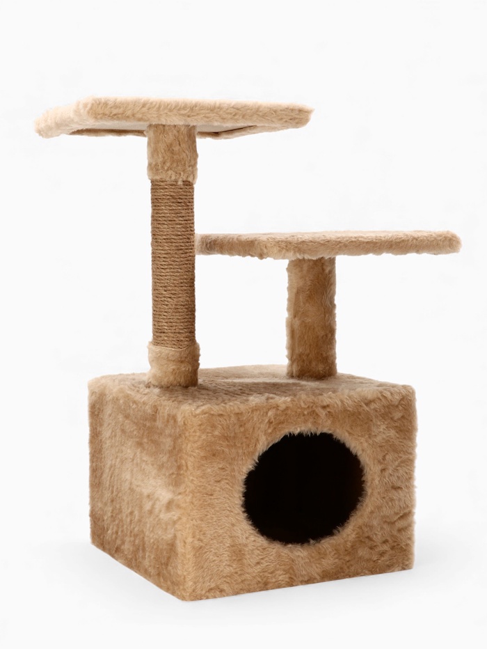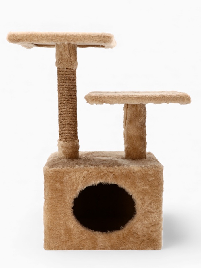 Домик-когтеточка 2-х ур. квадратный с 2-мя квадратными полками, 53×35×65 см, бежевый 9 фото
