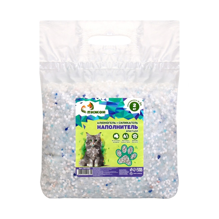 Наполнитель для кошачьих туалетов "Пижон", 1 кг Алюмогель + 1 кг силикагель кристалл до 5 л 4 фото