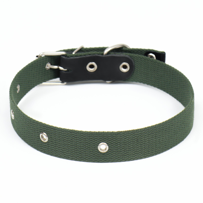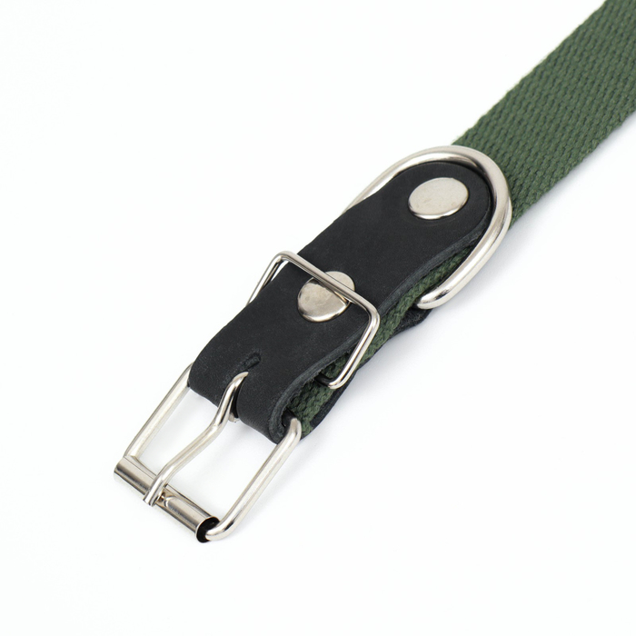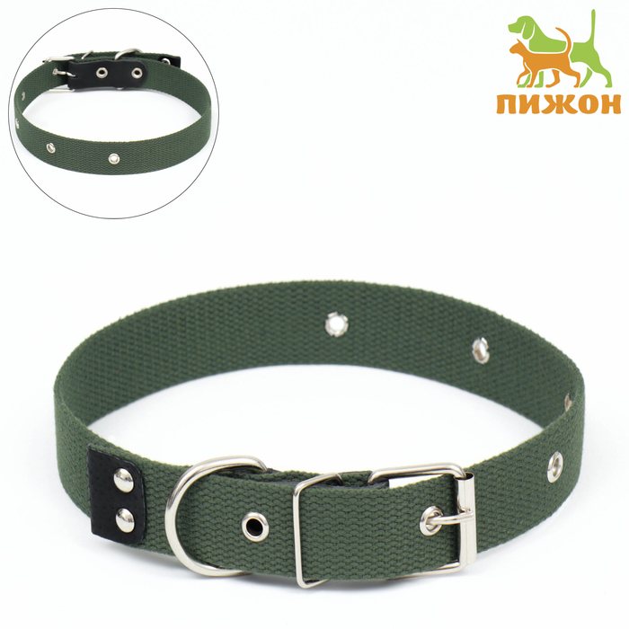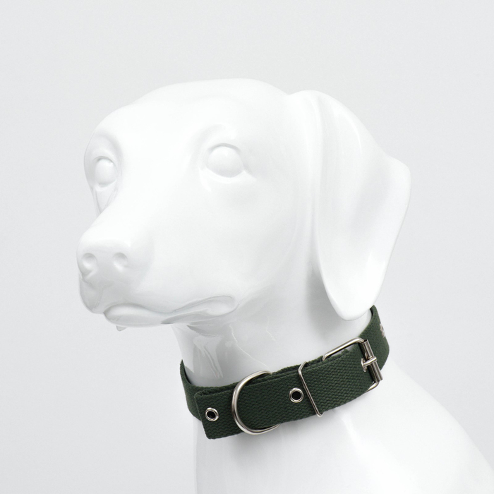 Ошейник брезентовый однослойный, 66×3 см, ОШ 33-60 см, тёмно-зелёный 8 фото