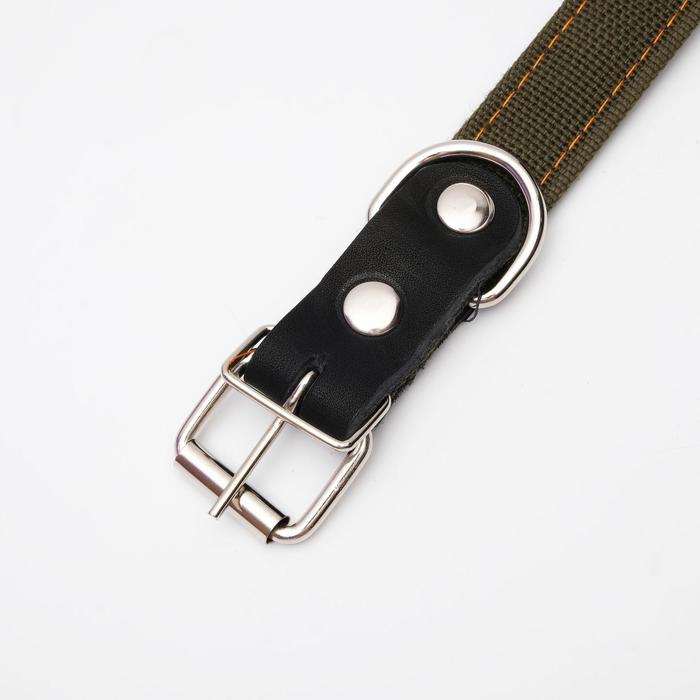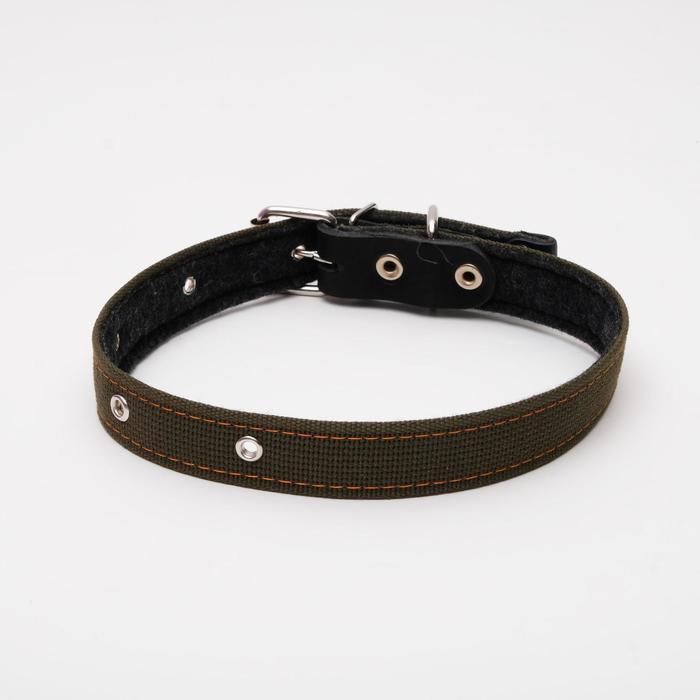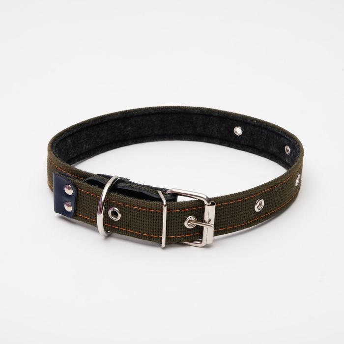 Ошейник брезентовый на фетре, 64×3 см, ОШ 30-55 см, тёмно-зелёный 4 фото
