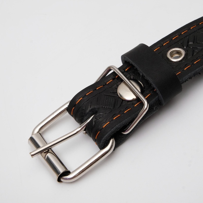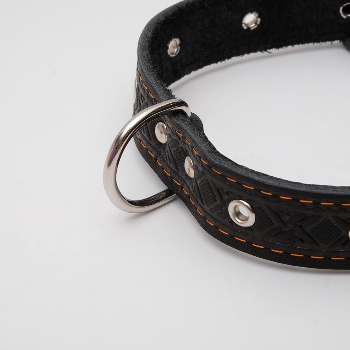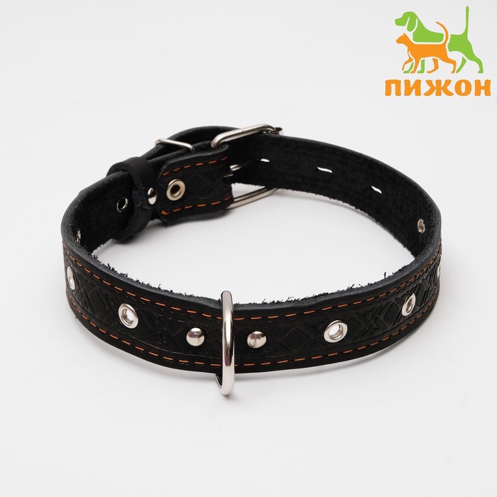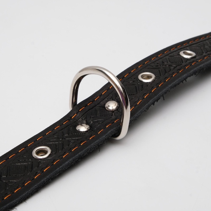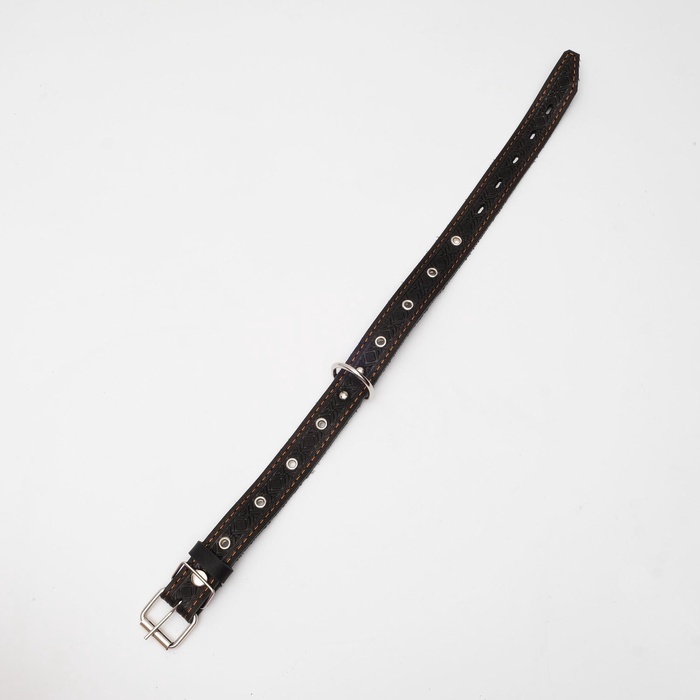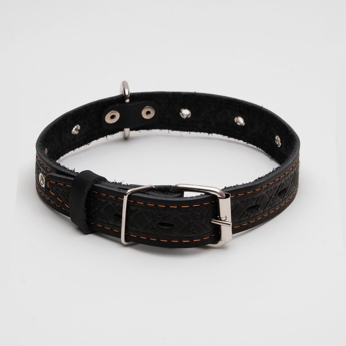 Ошейник кожаный тисненый однослойный, безразмерный, 3×60 см, ОШ 42-55 см, микс цветов 7 фото