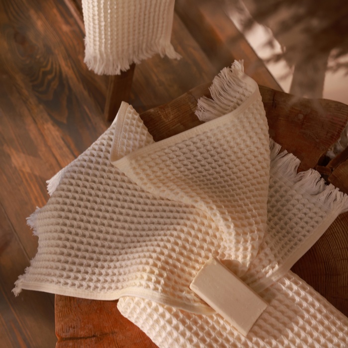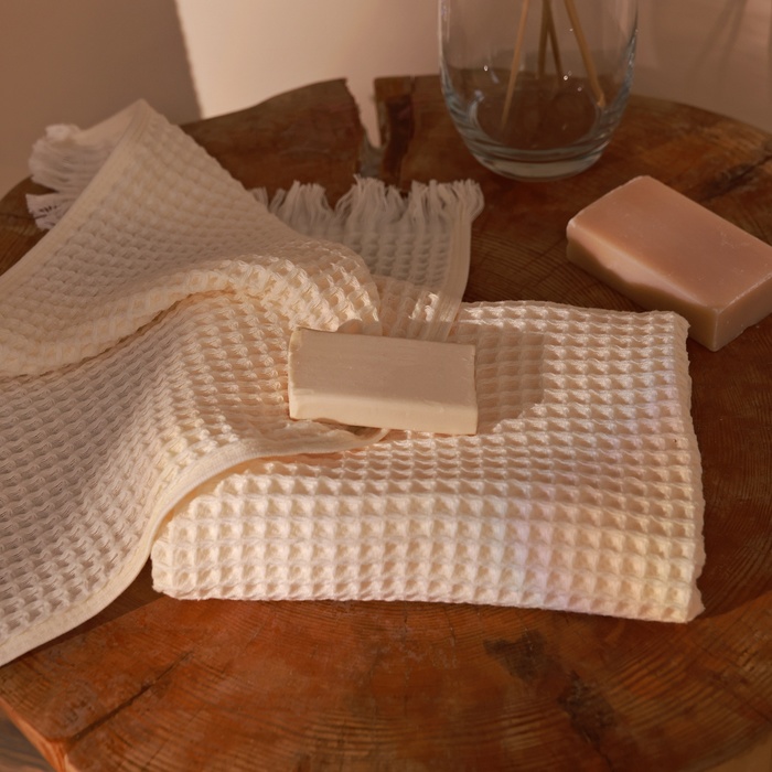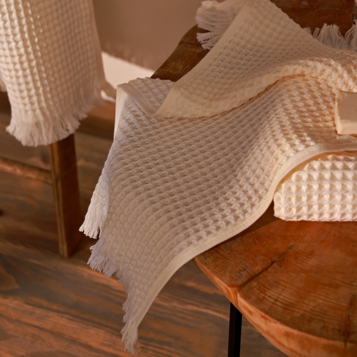Полотенце вафельное SL HOME: Boho «Айвори» 100×180 см, хлопок 100%, бежевое 10 фото