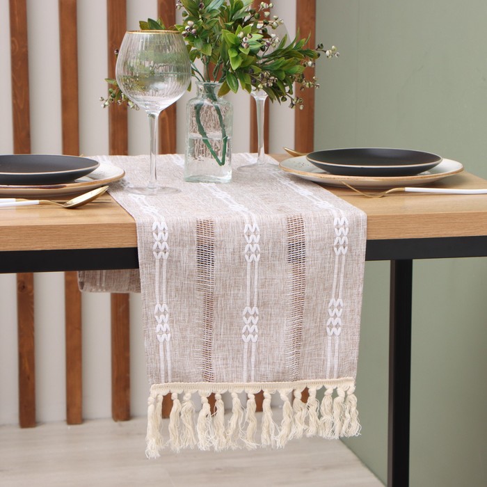 Дорожка на стол Этель коричневый 30×180 см, 100% п/э 6 фото