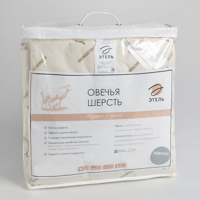 Одеяло "Этель" Овечья шерсть 110*140 см, тик, 300 гр/м2 5 фото