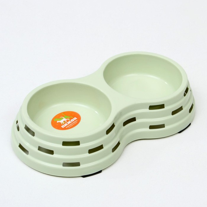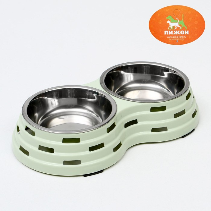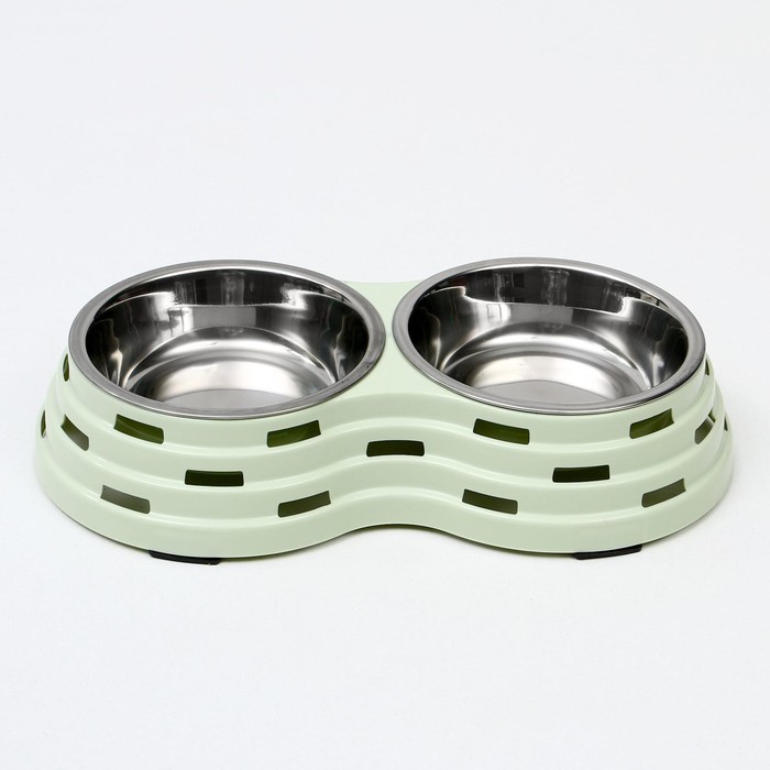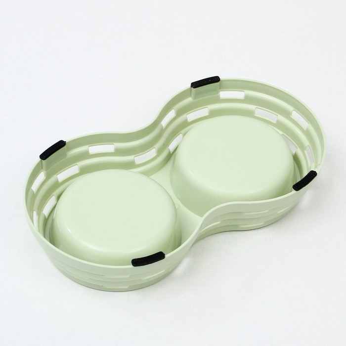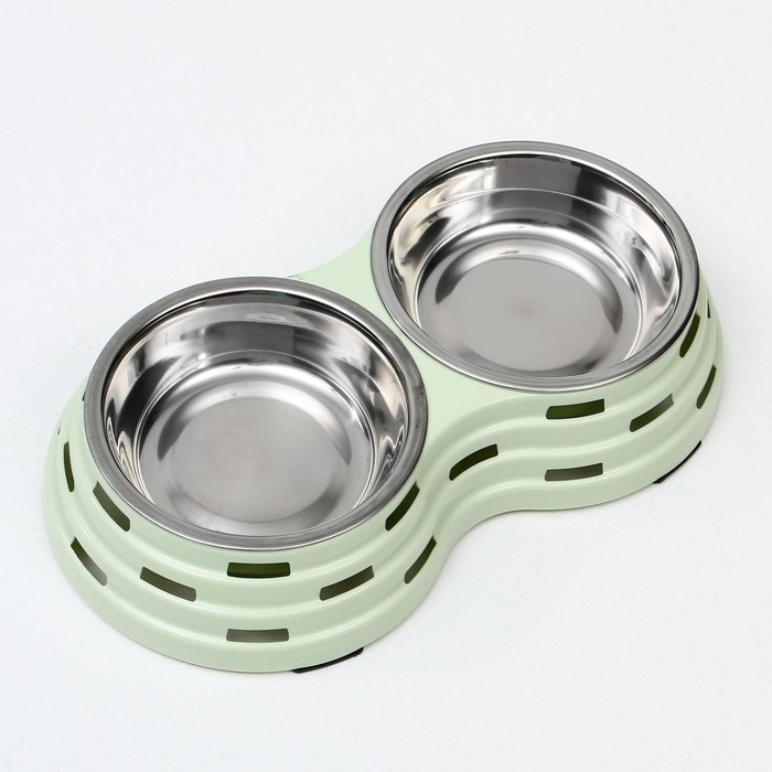 Миска металлическая двойная на пластиковом основании 2×160 мл, 25×14×5 см, зелёная 8 фото