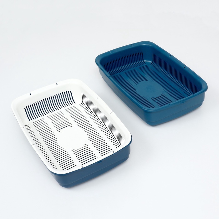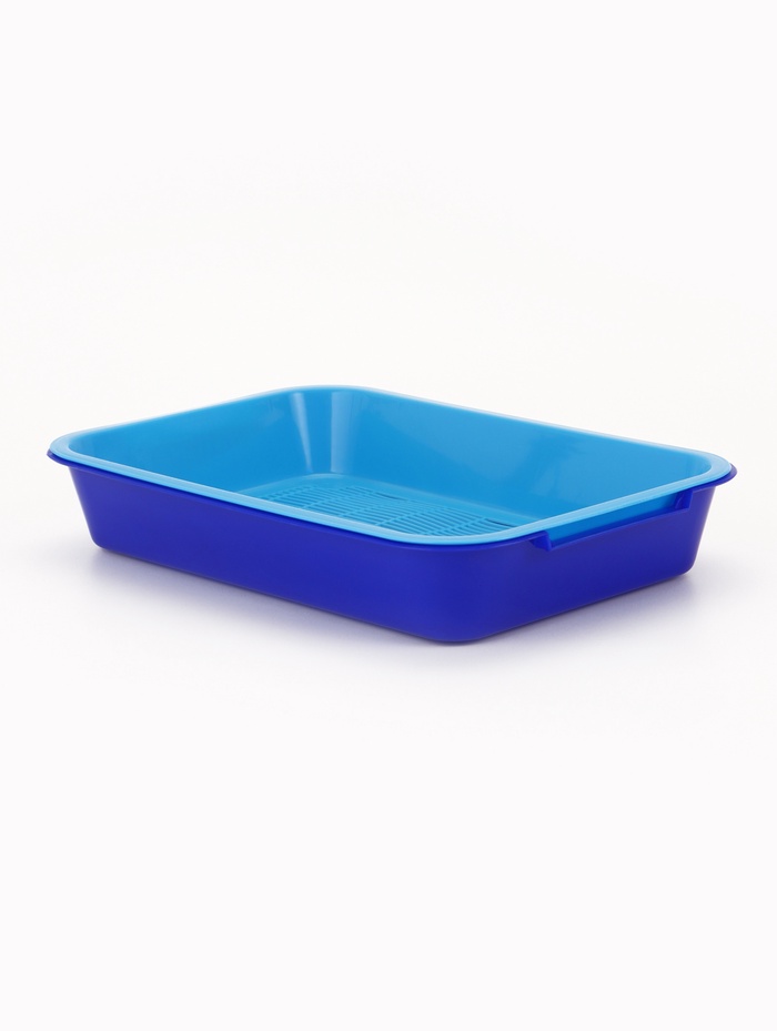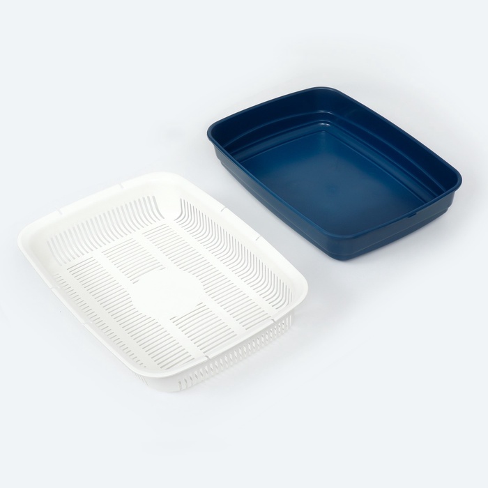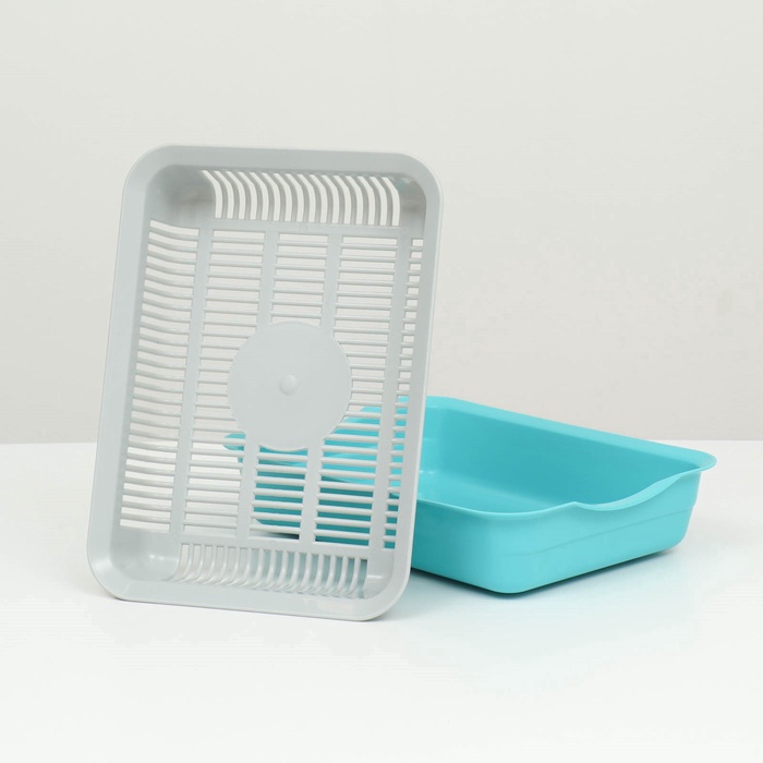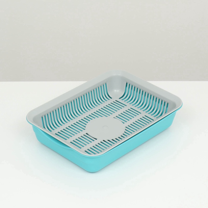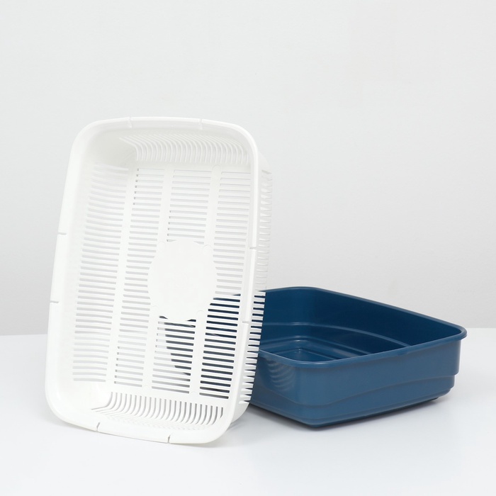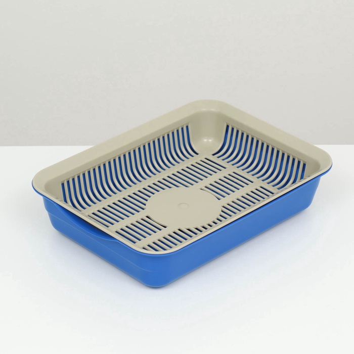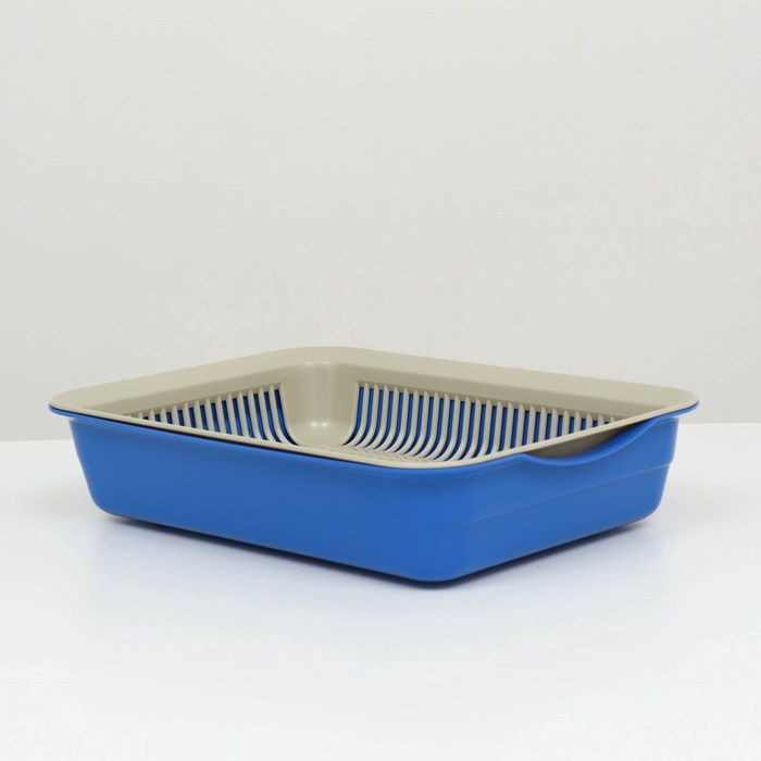 Лоток для кошек, 34.5×25.5×7.5 с, с сеткой, пластик, бежевый, синий 7 фото