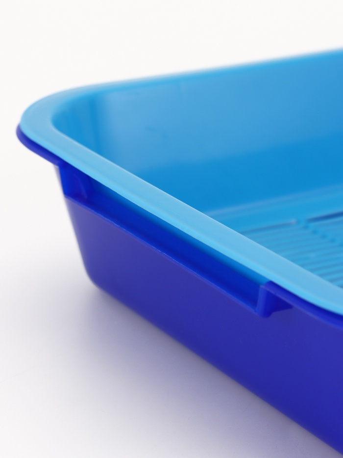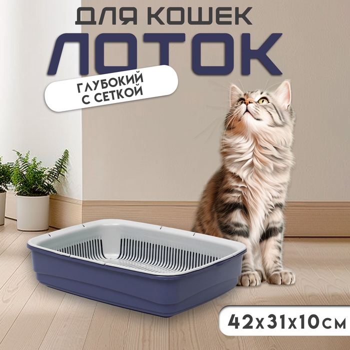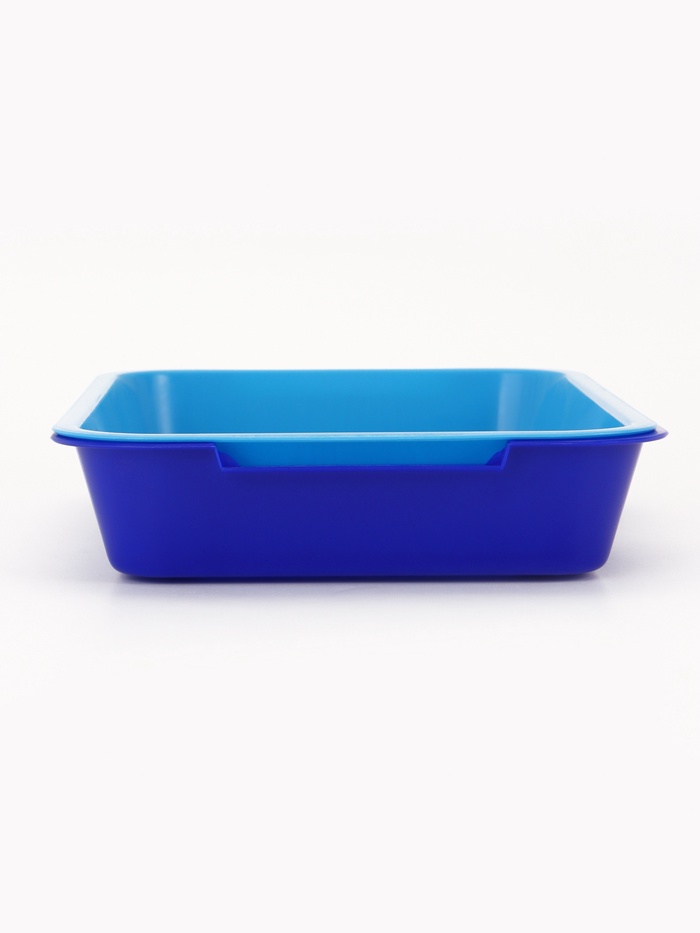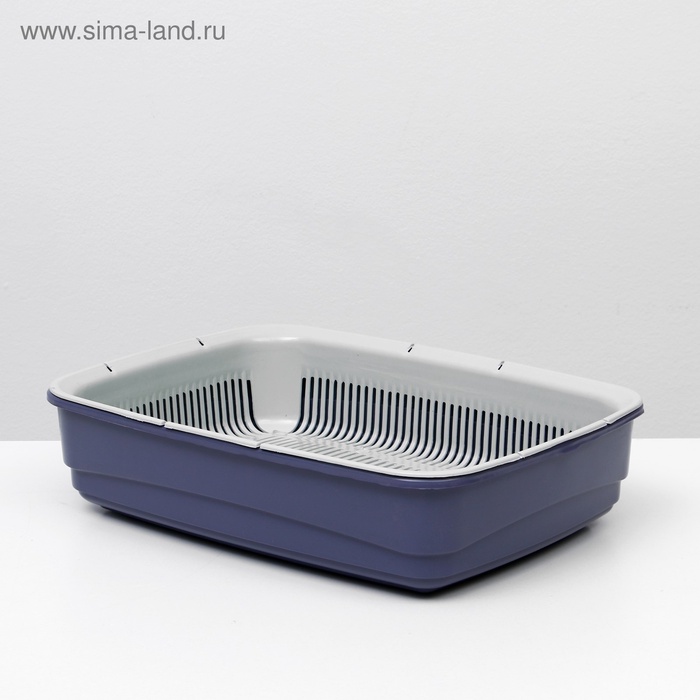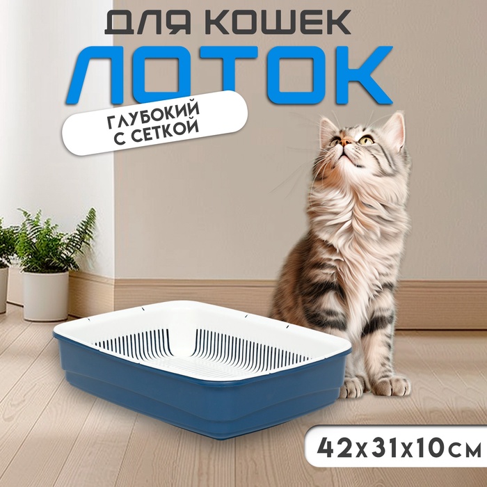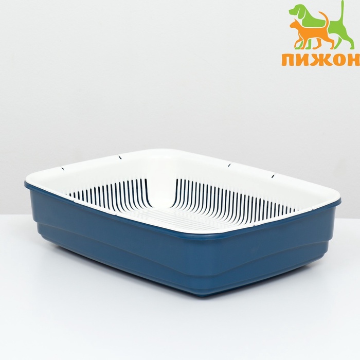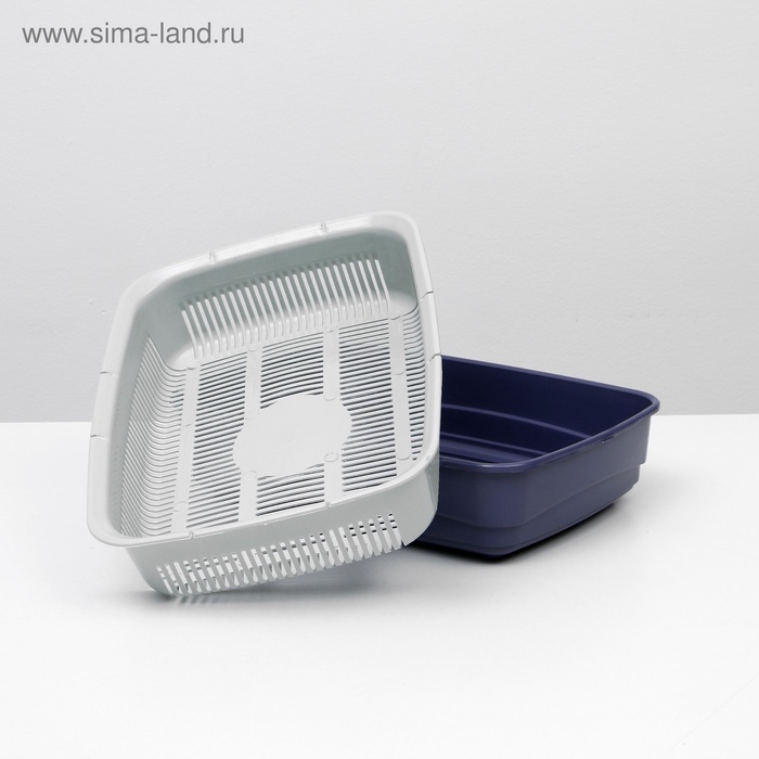 Лоток для кошек, 34.5×25.5×7.5 с, с сеткой, пластик, бежевый, синий 7 фото