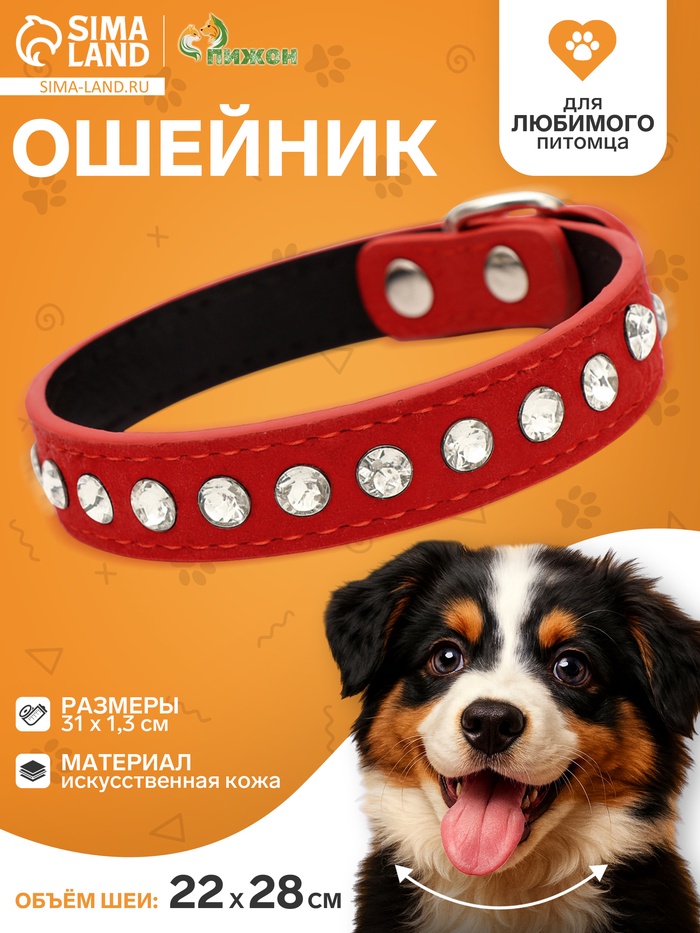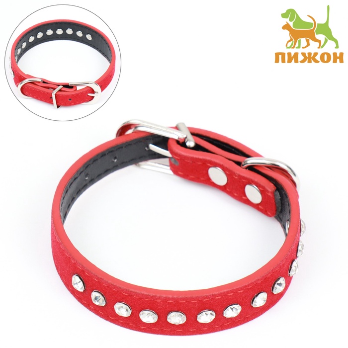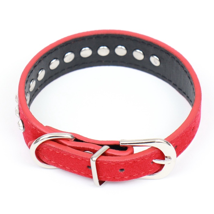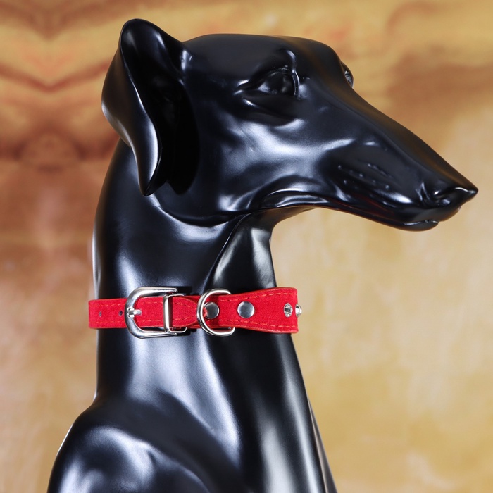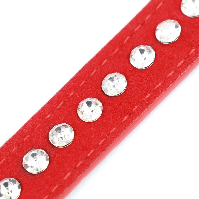 Ошейник «Бархат и стразы», 31×1.3/2 см, ОШ 22-28 см, красный 8 фото