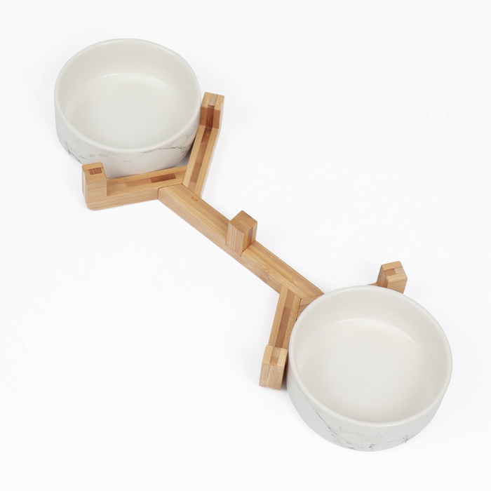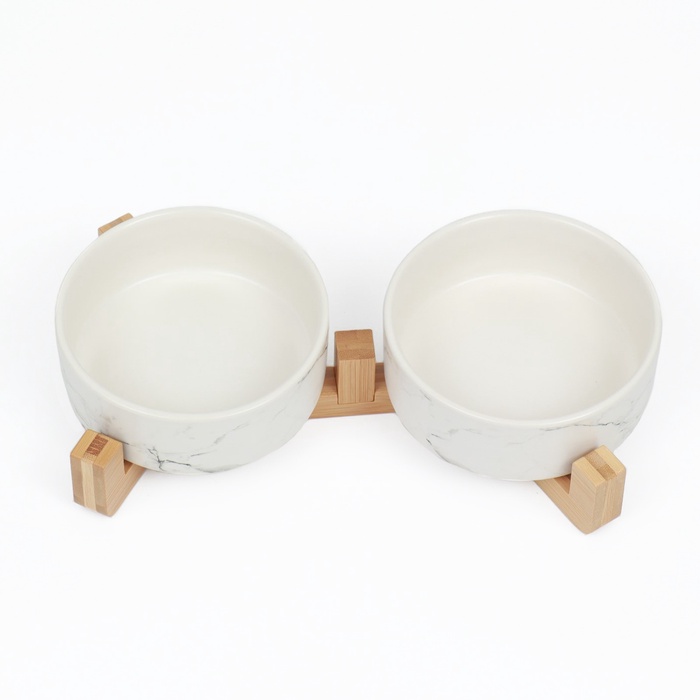 Миски, 450 мл, 28.5×15.5×7 с, 2 шт., на подставке, керамика, мрамор 8 фото