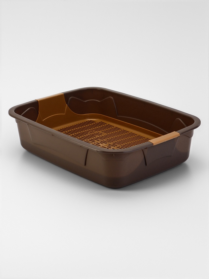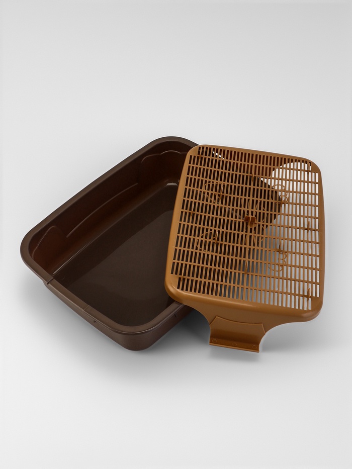 Туалет для кошек, 34.5×25.5×7.5 см, с сеткой, пластик, коричневый 3 фото