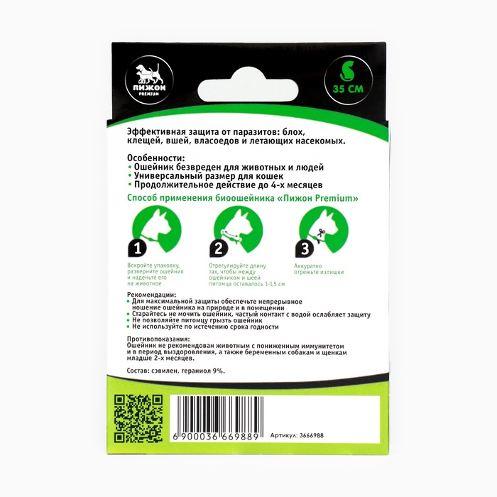 Биоошейник от паразитов для кошек и собак «Пижон Premium», 35 см, зелёный 5 фото