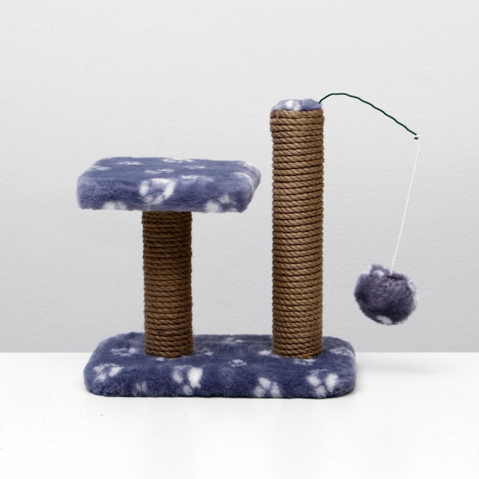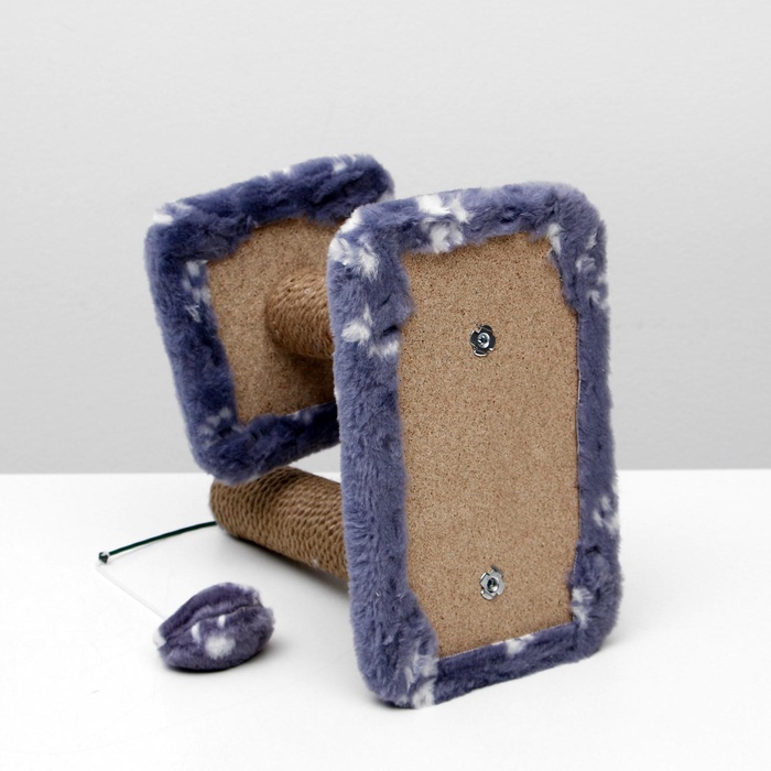 Когтеточка для котят двойная, 30×20×34 см, джут, серая с лапками 8 фото